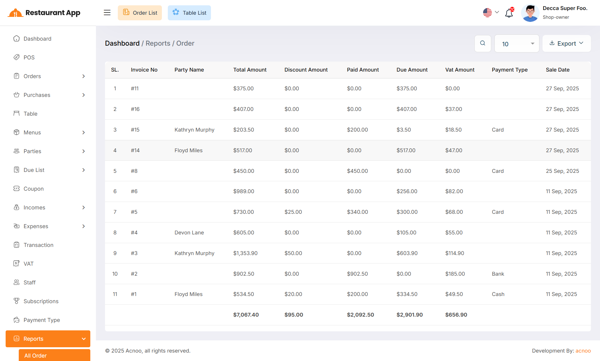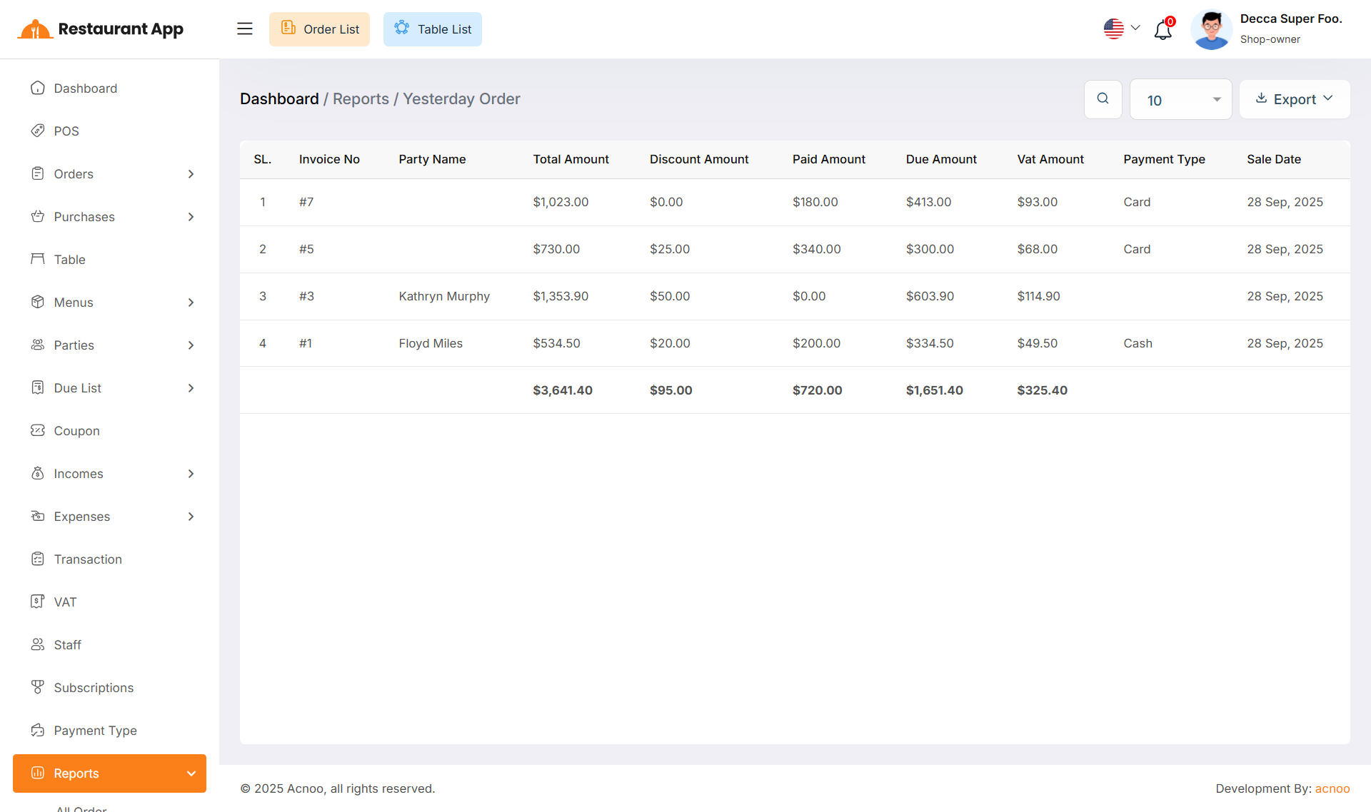 The Active Store List page is designed to provide a streamlined view of all active stores. Users can search, filter, and export store information while keeping track of enrollment and expiration dates. With intuitive navigation and dynamic data management, this page enhances administrative efficiency within the Restaurant App system.