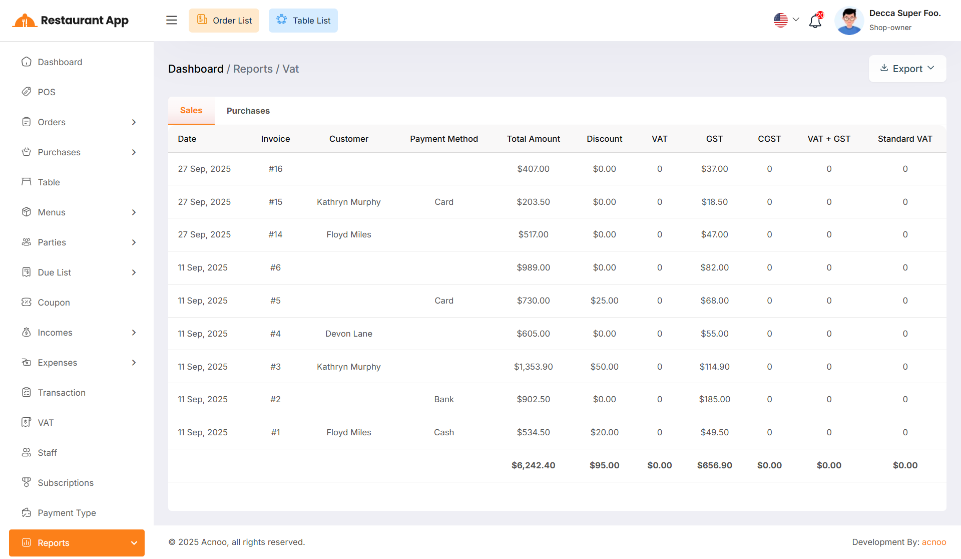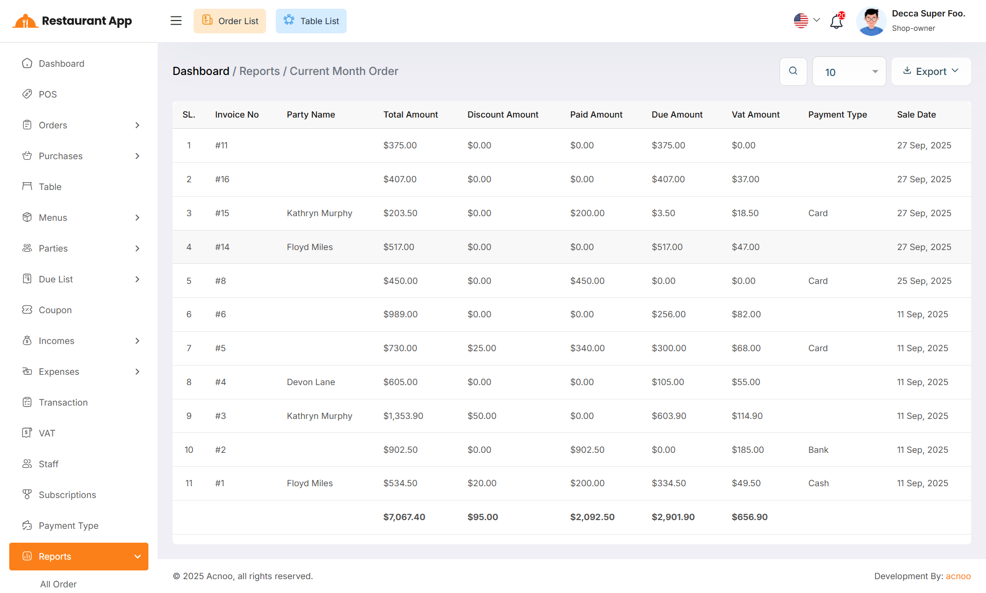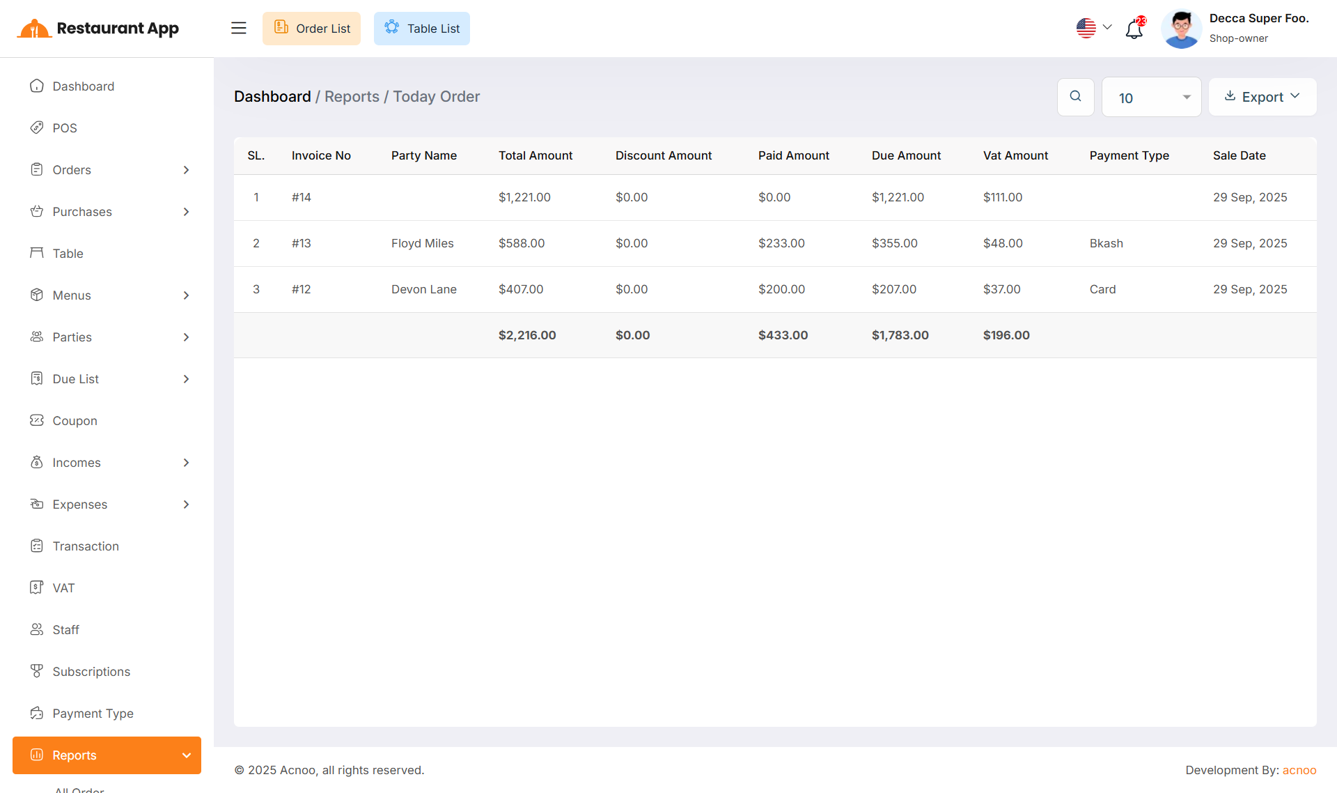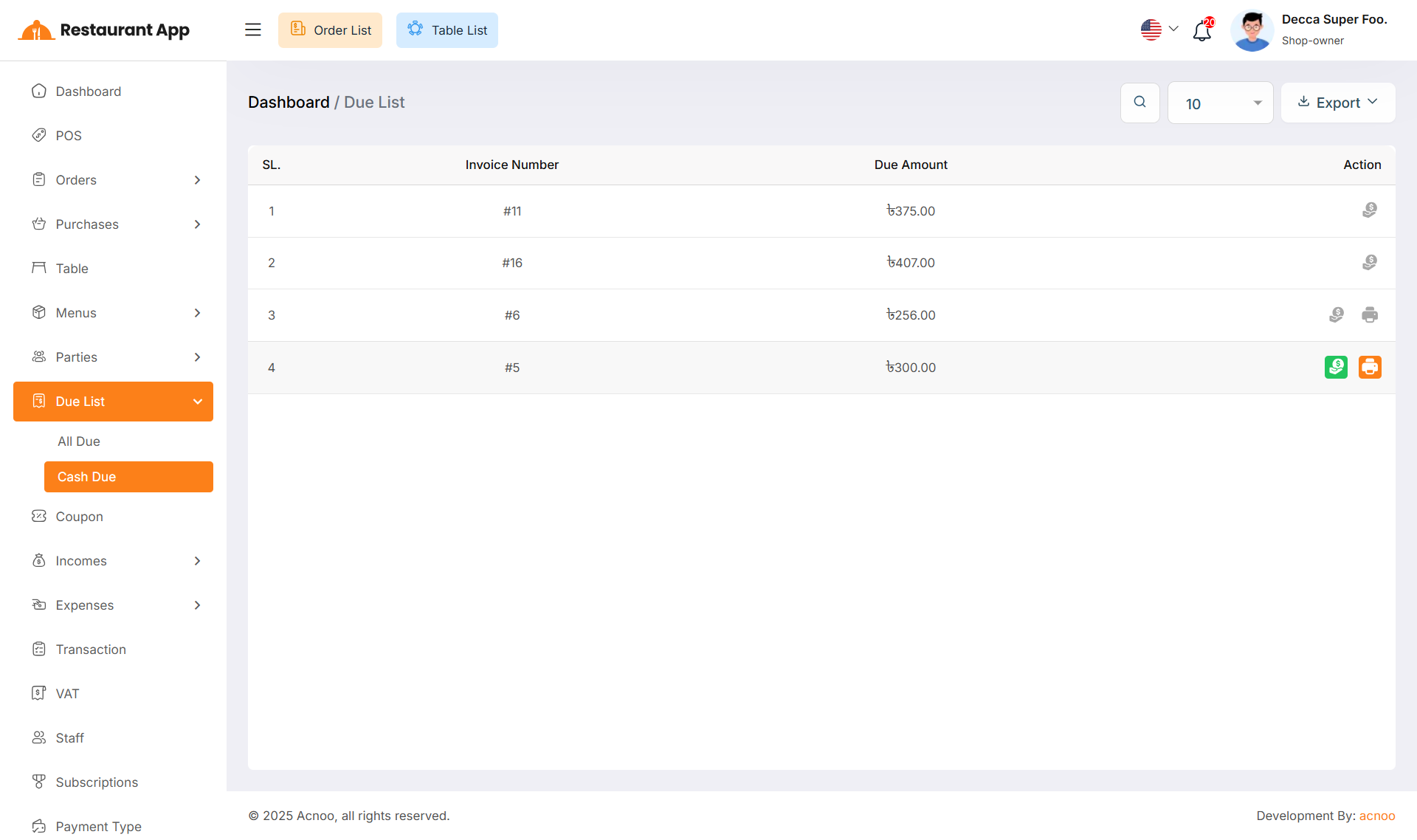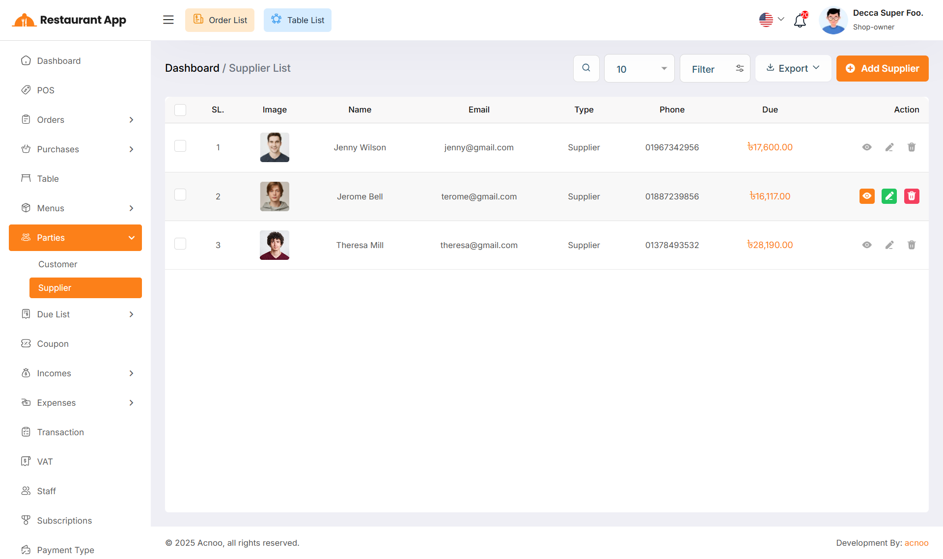 The Acoo Restaurant Admin Dashboard provides an intuitive interface for administrators to manage various aspects of the platform. It includes metrics on total Store, expired store, Paid Users, Free Users, subscription plan, income overview, and new register user.