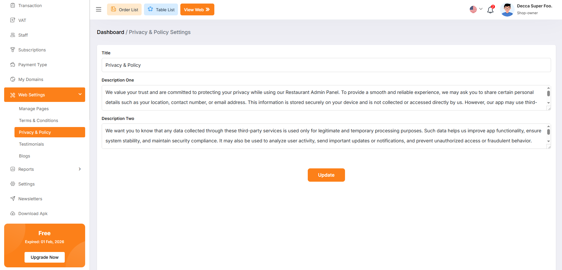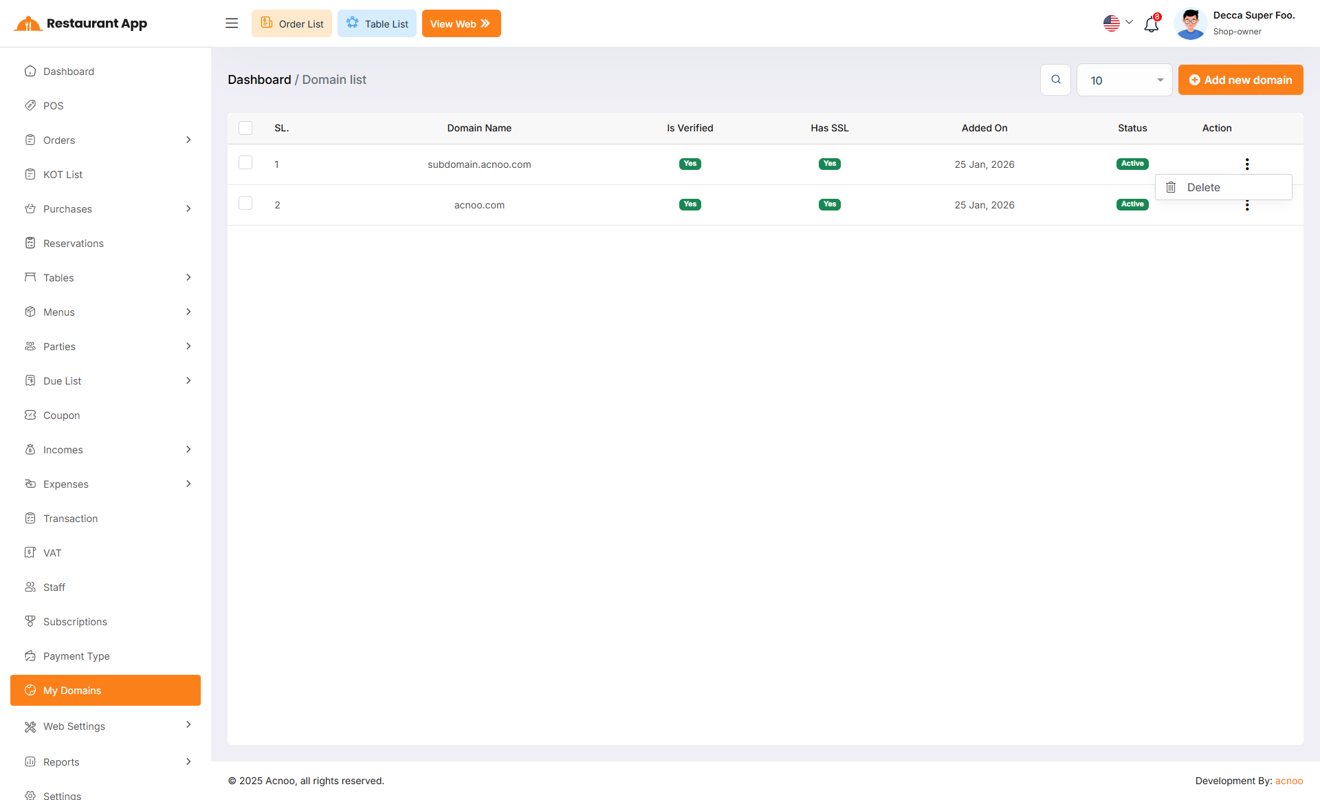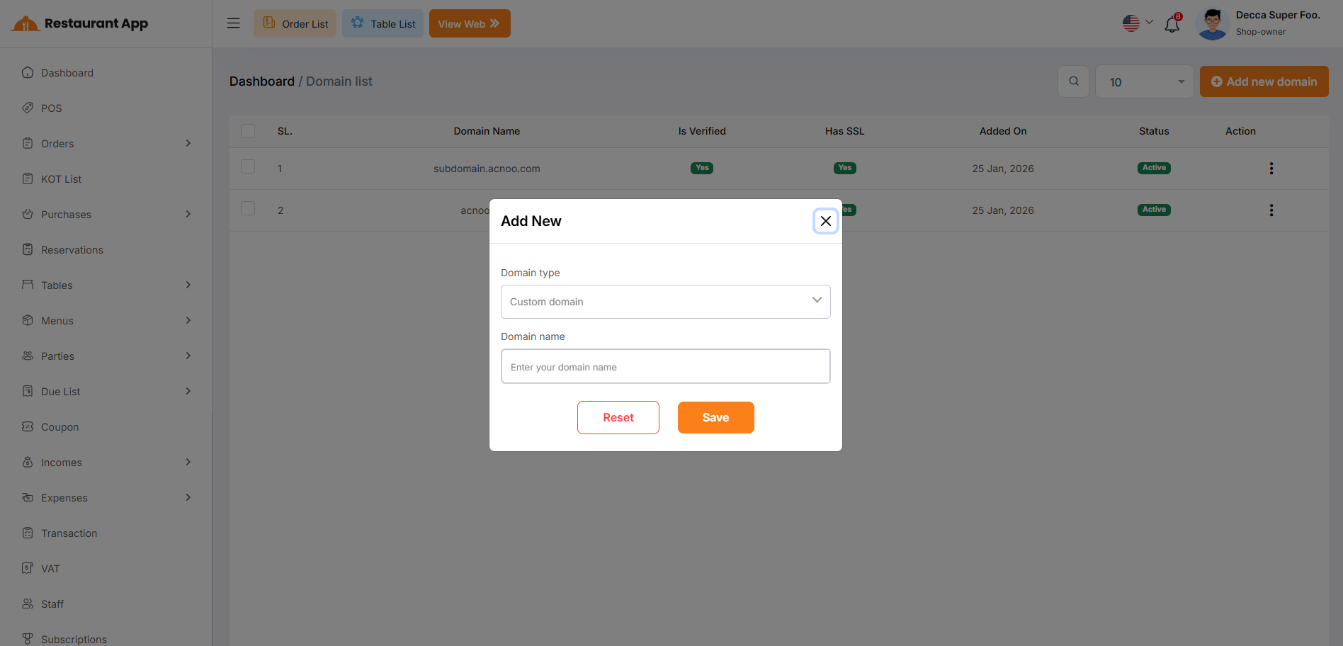 By enabling subdomains and custom domains, you boost professionalism, strengthen brand identity, and make your POS Pro platform more flexible and appealing for businesses of all sizes.