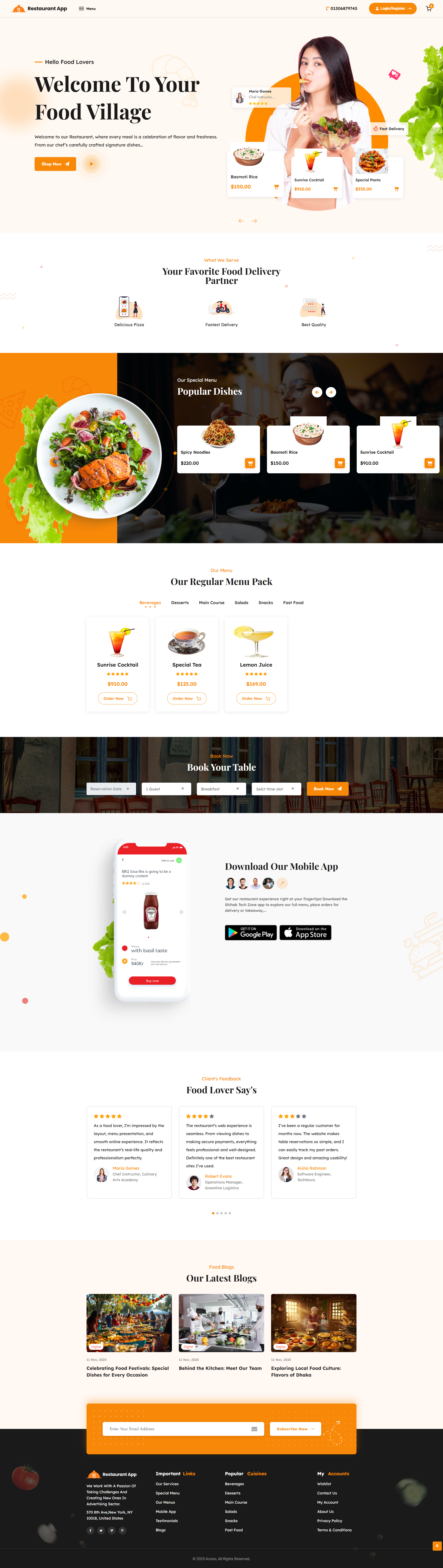 Latest Blogs Showcases the most recent articles, food festivals, or chef tips created in the Blog List section to keep content fresh and improve SEO.