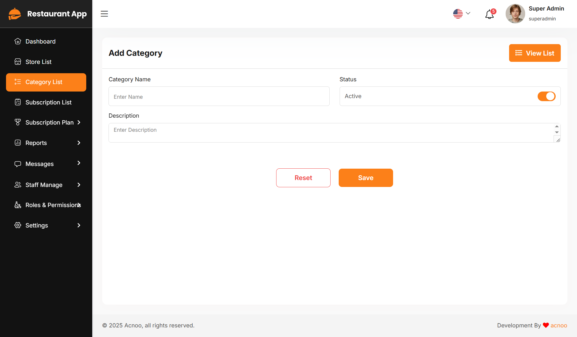 This section outlines the procedure for adding new business categories within the Restaurant App system. Business categories are used to classify and organize different types of businesses listed in the system.