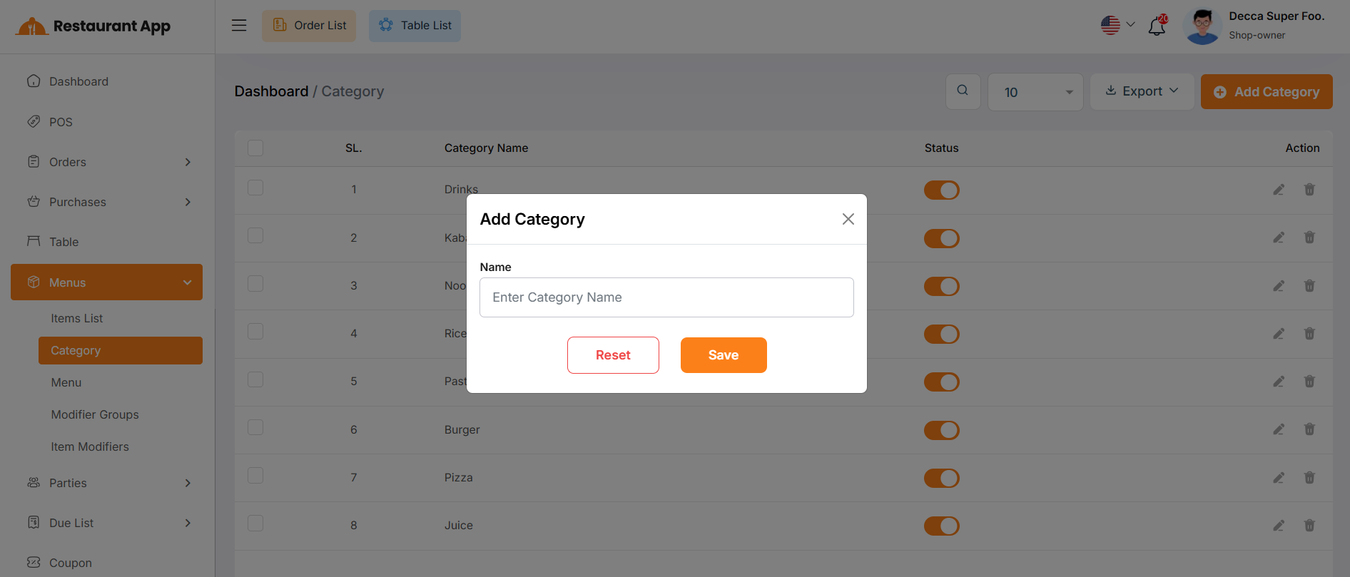 This section outlines the procedure for adding new business categories within the Restaurant App system. Business categories are used to classify and organize different types of businesses listed in the system.