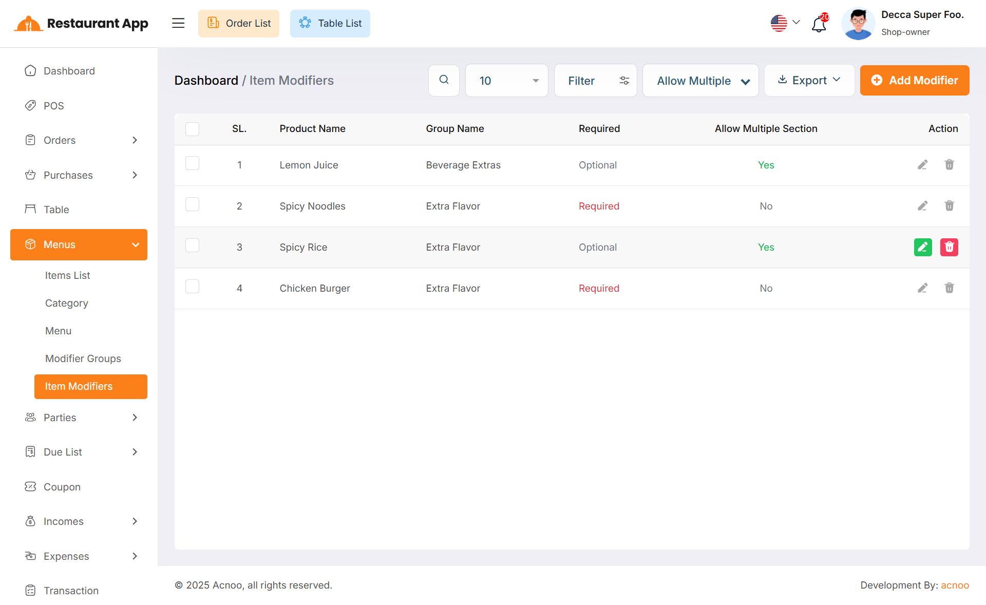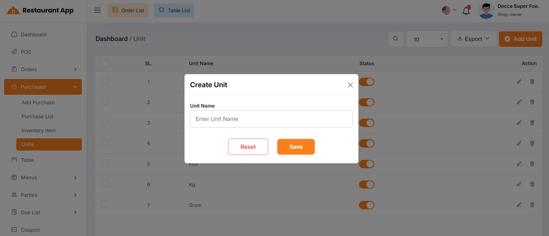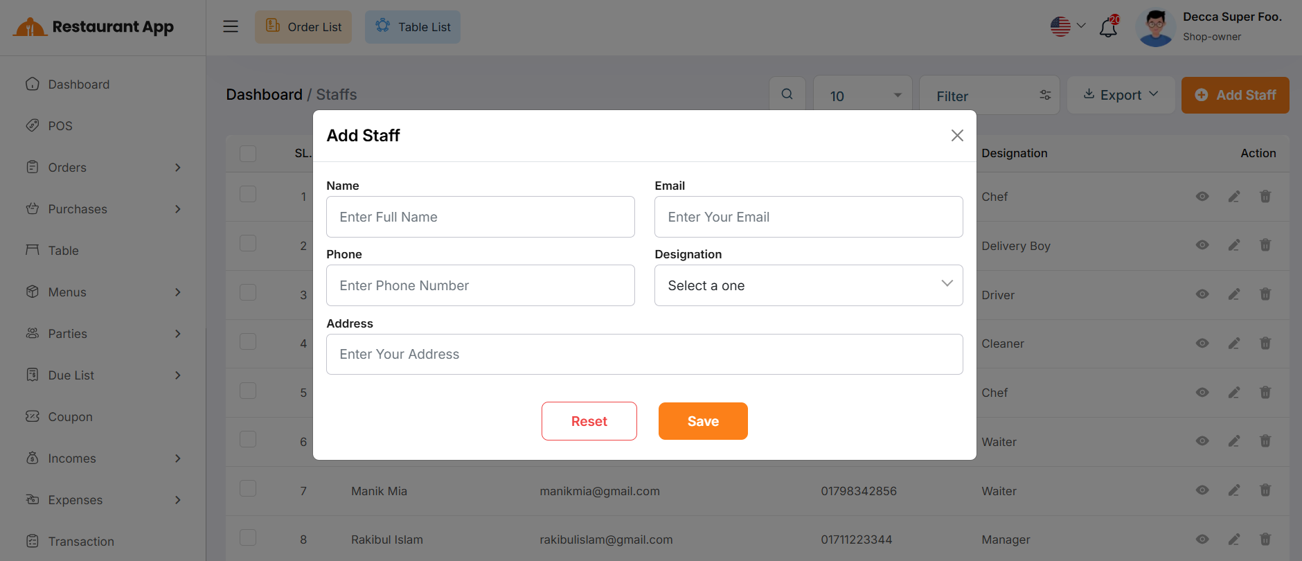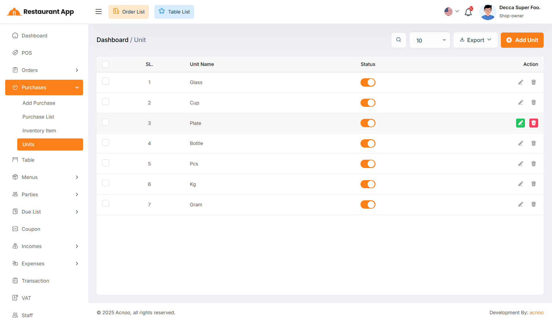 The Active Store List page is designed to provide a streamlined view of all active stores. Users can search, filter, and export store information while keeping track of enrollment and expiration dates. With intuitive navigation and dynamic data management, this page enhances administrative efficiency within the Restaurant App system.