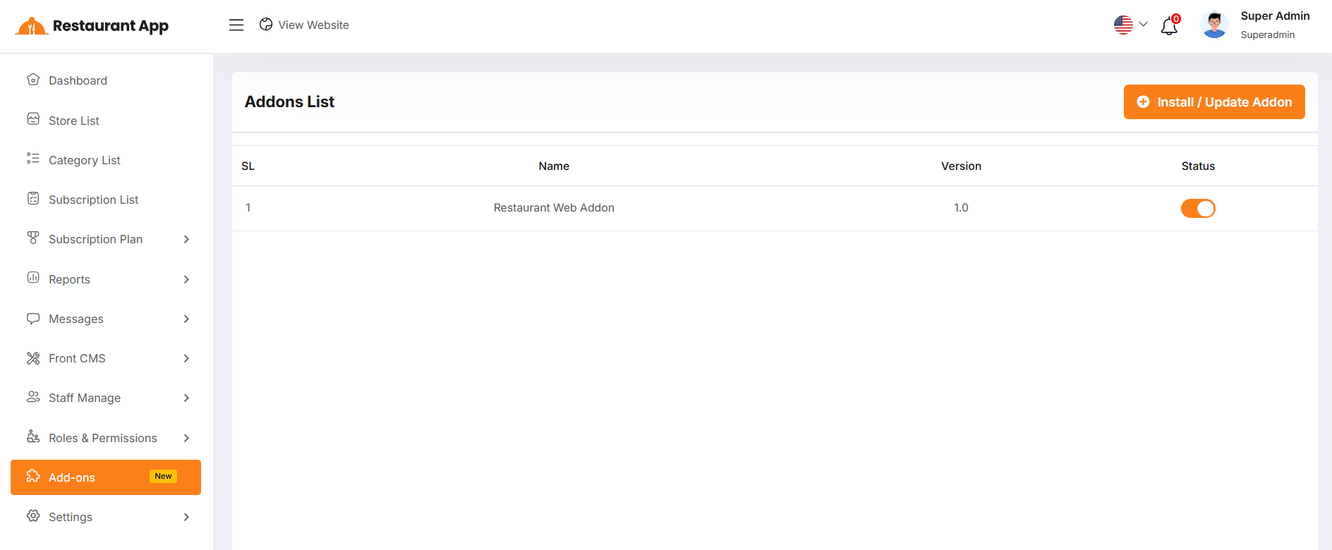 Note: Please click here to install your add-on. Before installing this add-on, you must first update the base project (Super-Admin.zip) to version 3.0