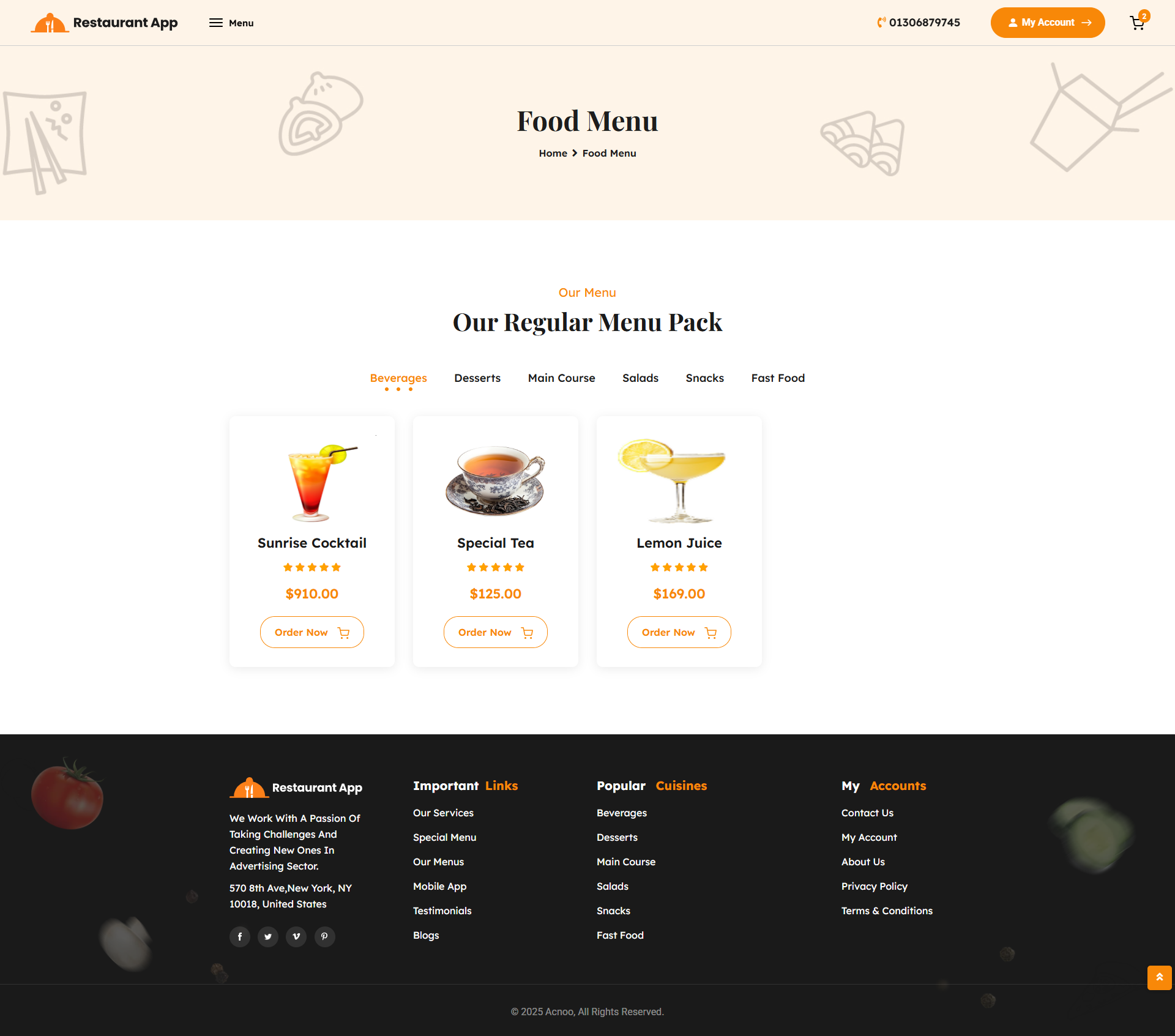 Latest Blogs Showcases the most recent articles, food festivals, or chef tips created in the Blog List section to keep content fresh and improve SEO.