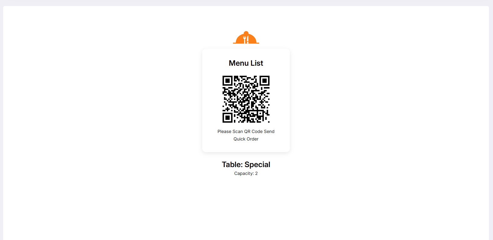 QR Verification: The page displays a Menu List header with the message "Please Scan QR Code Send Quick Order," confirming the digital connection.
