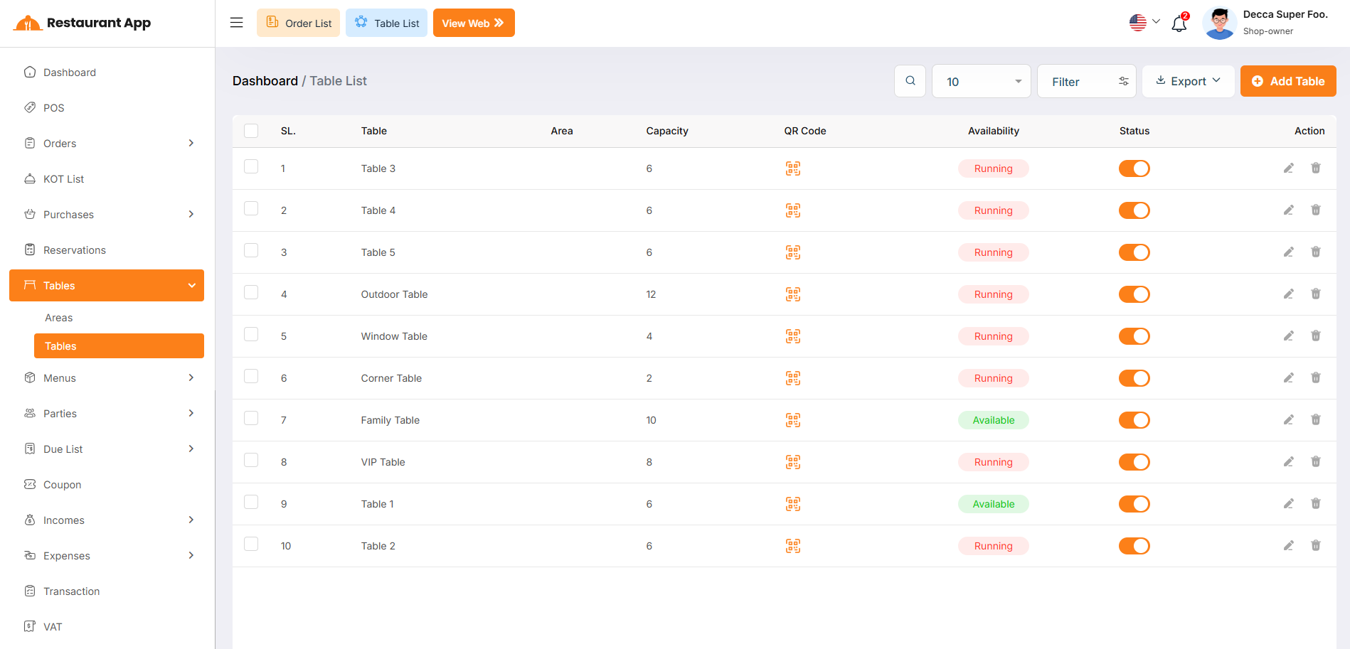 The Table QR Ordering system allows guests to access the digital menu and place orders directly from their seat by scanning a unique QR code. This process streamlines the dining experience by linking the customer's digital cart directly to their physical table in the restaurant's Point of Sale (POS) system.